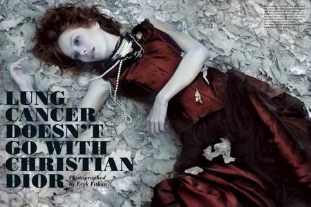 Курение - это не гламурноСексуальные девушки в роскошных нарядах не вызывают восторга. Рак легких не смотрится вместе с платьем от Диора, как впрочем и рак матки, и любой другой из видов рака плохо сочетаются даже с самыми роскошными туалетами. Это - реклама сингапурского сайта, который распространяет программу по отказу от курения для женщин, призывая зарегистрироваться и наслаждаться свежим воздухом без никотина. Активная кампания против курения, организованная по инициативе Health Promotion Board агентством Foote Cone & Belding Сингапур, включала в себя раздачу пробников "никотинового дыхания". ![]() ![]() ![]() На полоске-пробнике - текст с призывом бросить курить: "Вот так вы пахнете, когда курите. Запах 4 тыс. токсичных химических элементов невозможно перебить никаким парфюмом. Просто спросите об этом людей, окружающих вас". Материал подготовлен по материалам Coloribus. ![]() |