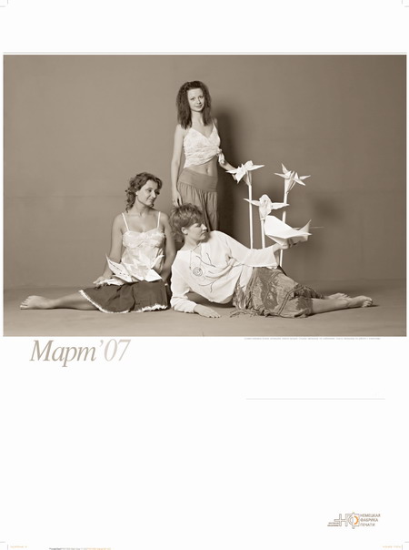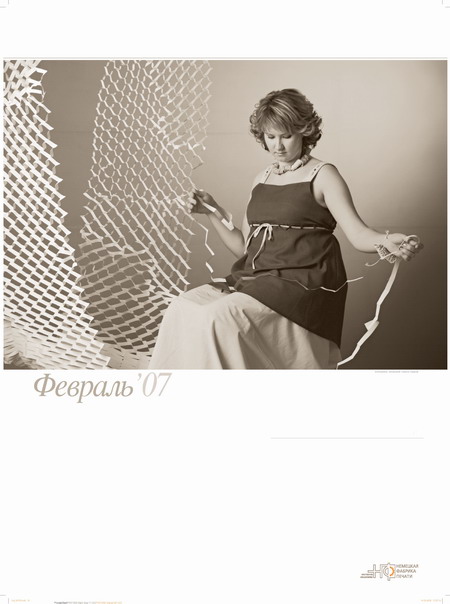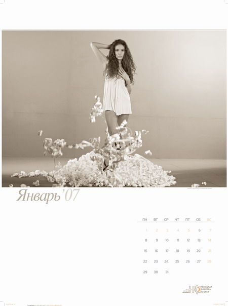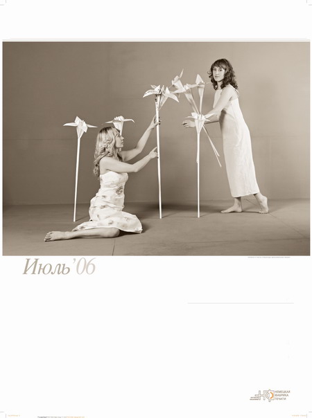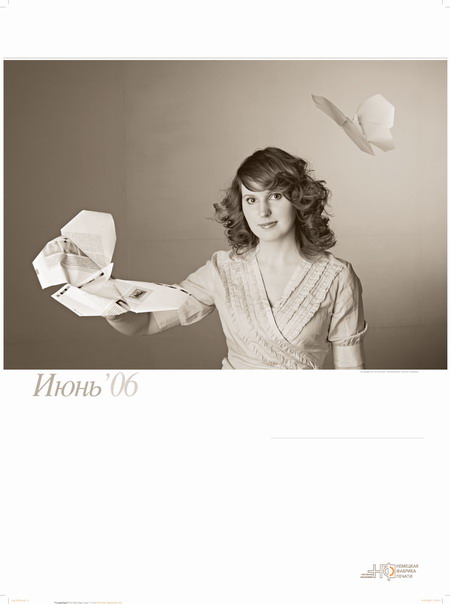 Типография "Немецкая фабрика печати" выпустила "внеочередной" корпоративный календарь с фотографиями сотрудниц типографииТипография "Немецкая фабрика печати" сообщила Sostav.ru, что недавно был сделан подарок их партнерам: вышел "внеочередной" корпоративный календарь с фотографиями сотрудниц типографии. Настенный перекидной календарь с марта 2006 по март 2007 года называется "Игры с бумагой". В основу сюжета календаря заложены мифические и сказочные сюжеты с использованием фигур зверей, птиц и цветов, сложенных из бумаги. Оригами складывались из настоящих печатных листов, с которыми работают в типографии. "Мы хотели показать, что наши сотрудницы - не только профессионалы своего дела, но и просто очень красивые и обаятельные девушки. Клиент не всегда видит тех, кто работает над его заказом. При съемках календаря мы решили исправить эту несправедливость. Теперь наши партнеры могут увидеть и операторов фальцевальных машин, и сотрудниц отдела допечатной подготовки, и многих других моих коллег, благодаря которым в итоге получается качественная полиграфическая продукция" - говорит о календаре руководитель отдела маркетинга Петрунина Елена. Состав творческой группы: Концепция и фотосъемка календаря - Юрий Винецкий Стилист - Ирина Лаханская Конструирование оригами - Роман Свиридов, директор Московского клуба оригами ![]() ![]() ![]() ![]() ![]() ![]() ![]() ![]() ![]() ![]() ![]() ![]() ![]() ![]() |