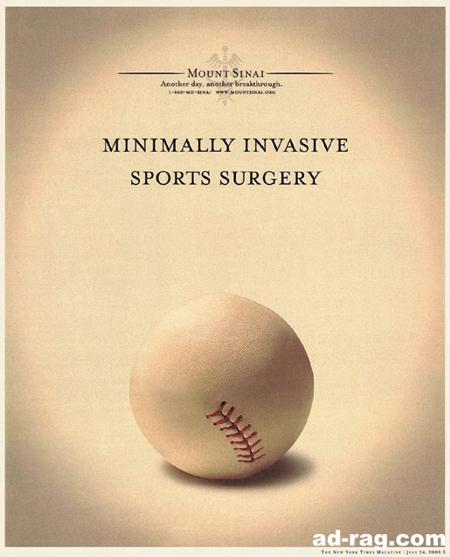Мы тебя не больно разрежемШрамик будет незаметным, мячик останется таким же круглым и активным… «Минимально агрессивная спортивная хирургия» (Minimally invasive Sports Surgery) – реклама госпиталя Mount Sinai, сделанная DeVito/Verdi (New York). ![]() www.e-generator.ru/ |