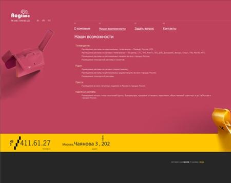 Cтудиz Exqui запустила новый корпоративный сайт рекламного агентства "Регтайм"Основным направлением деятельности агентства являются услуги по размещению рекламы. Это, как рассказали Sostav.ru, и послужило толчком при разработке слогана компании ("Разместим везде!") и идеи дизайна сайта - аллегорически изображенный космонавт-рекламист, размещающий перетяжку вокруг планеты. Разработкой проекта занималась команда студии Exqui. ![]() ![]() ![]() |