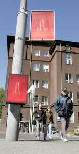 Дело остается за немногим — положить композицию на яркий фон — голубой и красный, соответственно. И поместить сей шедевр рекламного искусства в людных местах столицы — у остановок, школ, театров…