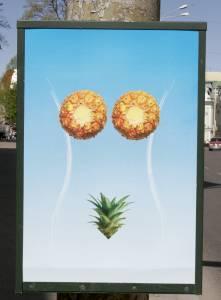 Журналистская байка гласит: восторженную статью об открытии мемориала на Маарьямяги одна из таллиннских газет снабдила броским заголовком — «Встал на века». Чем дала повод городским острословам окрестить бетонный штык монумента «мечтой импотента». Комбинация из трех фруктов Думали ли архитекторы и скульпторы о фрейдистском подтексте своего монументального творения — сказать сложно. Но в том, что к нему апеллировали создатели рекламы, «украсившей» собой Таллинн, сомневаться не приходится: едва ли не с каждого третьего мусорного ящика, укрепленного на фонарных столбах, на горожан смотрят композиции, навевающие недвусмысленные ассоциации. Углядеть в ананасе женский силуэт проблематично: для этого два основания упомянутого фрукта надо поместить на одну линию повыше, провести две изогнутые линии, а снизу кокетливо расположить зеленый «кустик» хвостика плода. Скомбинировать три помидора — с условием того, что один из них слегка «удлинен» в утрированное изображение мужского детородного органа, значительно проще: те, кто помнит пионерское детство, провернут подобное, как говорится, «с полпинка».