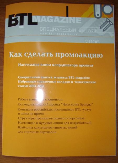 Выпущен сборник "Как сделать промо-акцию: Справочные вкладки BTL-magazine"Как сообщили Sostav.ru, специализированный российский журнал по стимулированию сбыта BTL-magazine выпустил сборник "Как сделать промоакцию: Справочные вкладки BTL-magazine". Сборник включает в себя шаблоны документов для проведения акций трейд промоушн, структуры тренингов промо-персонала, подробный алгоритм работы над BTL-проектом и ответственность агентства и клиента, итоговый отчет по акции, исследование отношения клиентов к агентствам. ![]() ![]() ![]() |
