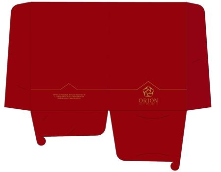 1. Тиснение золотой фольгой логотипа. 2. Дизайнерская фактурная бумага цвета бордо. 3. Оригинальная вырубка с прорезями для визитки и для диска. |