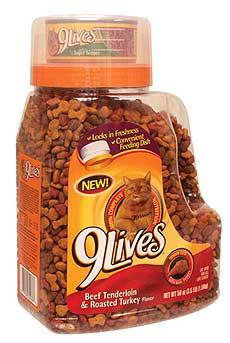 Эта упаковка безусловно хороша: сквозь прозрачные стенки контейнера видно всё содержимое упаковки – качественного корма для кошек 9Lives ( 9 жизней) от Компании Del Monte Foods. Ручка сама по себе является выпирающей частью контейнера, также вмещающая в себя продукт. Наиболее примечательным моментом является крышка-миска, т.е. многофункциональная система закрывания контейнера с мерными делениями для пропорционального дозирования корма Страна: США Upakovano.ru |