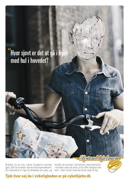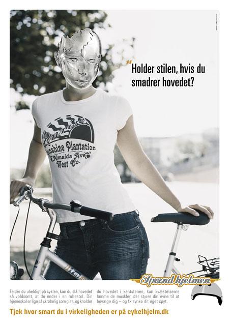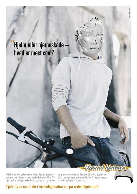Во что превратится голова, если ездить без шлемаДатская социальная рекламная кампания Spænd Hjelmen"Ты станешь еще более стильной, если вдребезги разобьешь свою голову?", "Шлем или разрушение мозга - что круче?" - такие вопросы задает датской молодежи Совет по безопасности дорожного движения в рамках кампании Spænd Hjelmen. "Пристегни ремни" (шлема). Кампания призывает молодых людей самих позаботиться о собственной безопасности и надевать при катании на велосипеде шлем. ![]() ![]() ![]() ![]() |