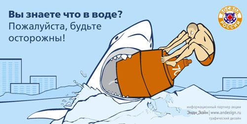 Отсутствие акул - не повод для расслабления. Бюро графического дизайна "Эндизайн" разработало дизайн биллбордов для социальной рекламной кампании ВОСВОД РоссииПеред началом пляжного сезона ВОСВОД России повесило на московских улицах биллборды, привлекающие внимание москвичей к проблеме безопасного поведения на водоемах. Идею и дизайн этой рекламной кампании разработало бюро графического дизайна "Эндизайн". Цель рекламной акции - мотивировать горожан к сознательно осторожному купанию. Два сюжета "на заданную тему" демонстрируются горожанам с 5-го июня, размещение еще двух биллбордов планируется в ближайшее время. "Была интересная история согласования дизайнов в комитете рекламы, - говорит сотрудник бюро Дмитрий Петров, - первоначальная надпись на щите с пузырями "Еще по 50 и купаться?" показалась чиновникам "призывающей купаться пьяными", биллборд с акулой не пропустили вообще, сказали что в Москве акулы не водятся. Это верно, конечно, но в этом вся социально-рекламная фишка". "Акулу не пропустили вообще, на плакате с пузырями попросили фразу "Еще по 50…" заменить на что-нибудь не призывающее людей употреблять алкоголь и купаться". ![]() ![]() ![]() ![]() ![]() |
