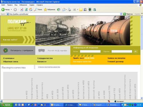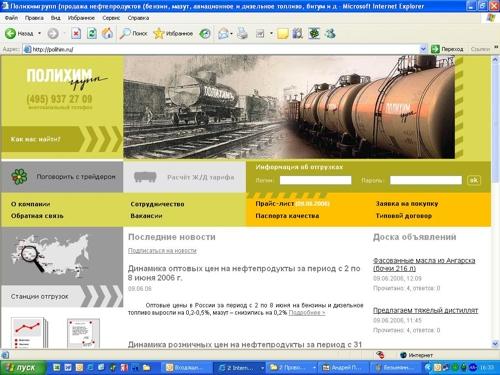 Студия "Инфолио" разработала корпоративный сайт для группы компаний "Полихим"Студия "Инфолио" разработала корпоративный сайт для группы компаний "Полихим", работающей на рынке нефтепродуктов. Основные критерии, которые нужно было учесть при разработке сайта - это информативность и эргономичность. Посетитель должен иметь возможность быстро и просто находить интересующую информацию, смотреть паспорта качества товара, аналитику отрасли и реальные цены на интересующие нефтепродукты. Среди интерактивных возможностей сайта - централизованный сбор информации о стоимости поставляемых видов нефтепродуктов в любой из 25 станций отгрузки, расчет стоимости доставки требуемой партии на любую железнодорожную станцию России и конечная стоимость партии нефтепродуктов в точке прибытия. Теперь посетители в режиме реального времени имеют доступ к актуальной информации о стоимости железнодорожных перевозок в различных типах цистерн между любыми точками России. У сайта также есть скрытые возможности в клиентской части ресурса: каждый клиент ГК "Полихим" получает уникальный идентификатор, введя который он имеет возможность отслеживать движение заказанной партии нефтепродуктов от пункта отгрузки до пункта назначения. ![]() ![]() |