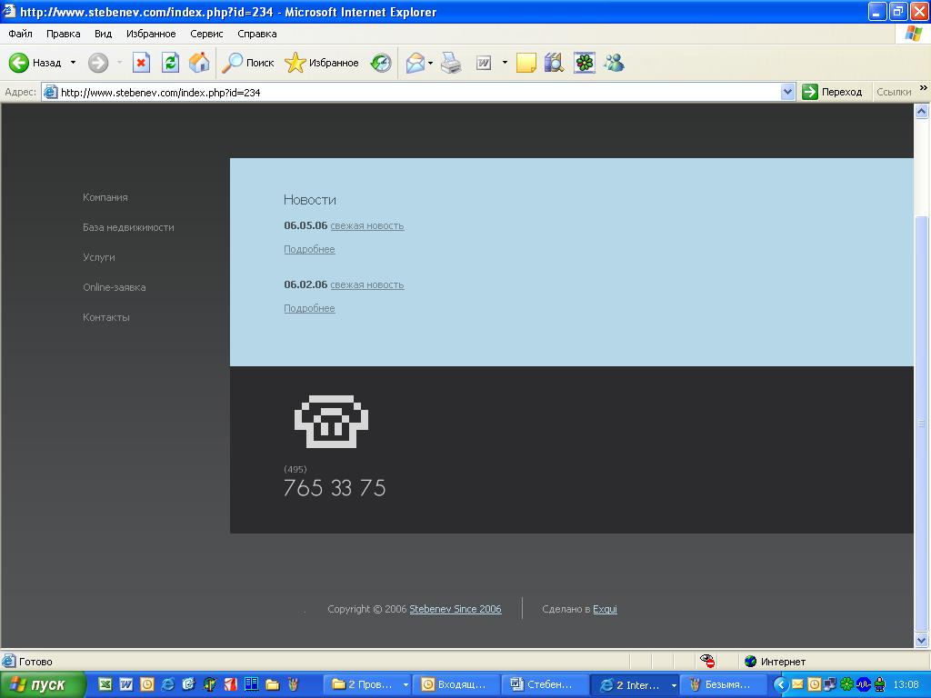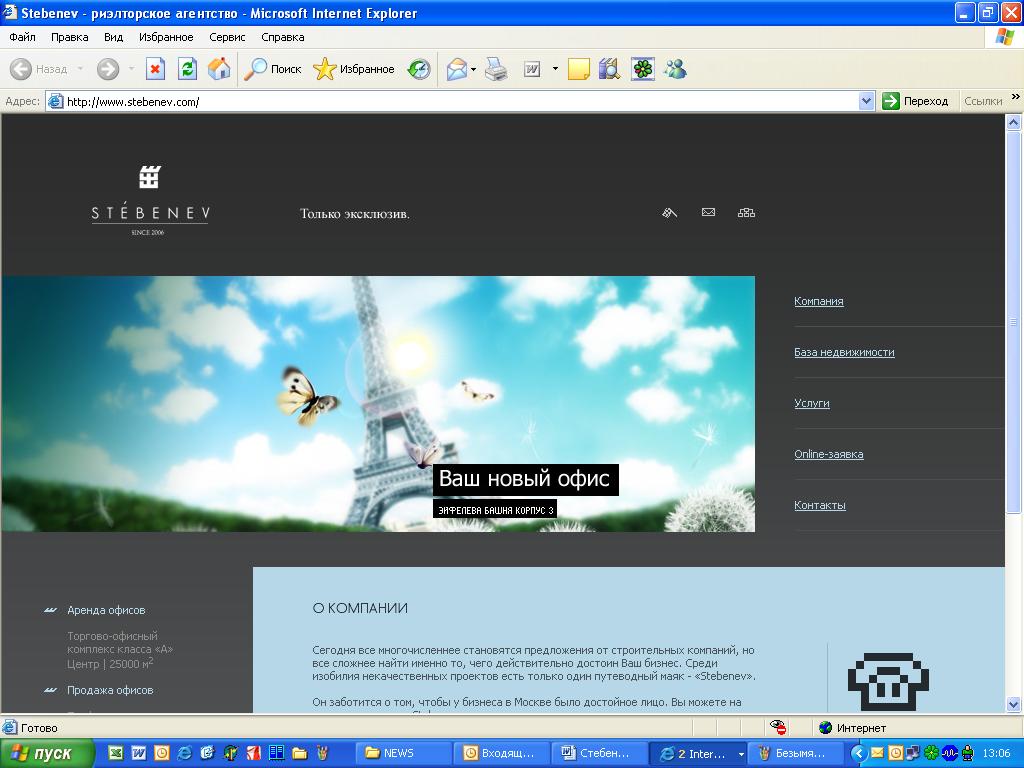 Дизайн студия Exqui разработала сайт риэлтерскому агентству StebenevОсновным направлением деятельности агентства Stebenev являются операции с эксклюзивной коммерческой недвижимостью. Именно это и послужило отправной точкой при разработке идеи сайта www.stebenev.com, в основе которой легла серия баннеров на стартовой странице сайта, аллегорично иллюстрирующих главное преимущество компании перед конкурентами - эксклюзивные офисные предложения. Состав творческой группы: Руководитель проекта: Котов Александр Дизайнер: Бурлаков Степан Технический дизайнер: Беляев Николай Копирайтер: Паршиков Сергей |