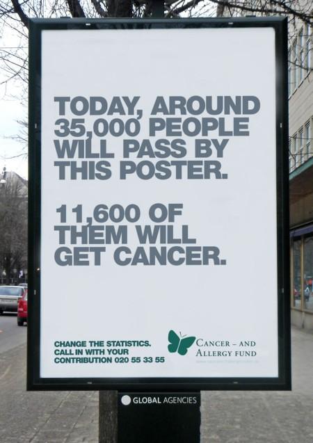 Страшилки шведские ракообразныеCancer and Allergy Fund (Фонд борьбы с раком и аллергией) пугает прохожих постерами (от Global Agences) с шокирующей информацией о том, что из 35000 прохожих, прошедших мимо этого постера, 11600 заболеют раком, что из всех 53424 жителей города Кунгсхольмена (Kungsholmen) 17808 пренепременно тоже встретятся с раком и т.п. Откуда такая статистика — не известно, но жить уже не хочется. ![]() ![]() ![]() www.e-generator.ru/ |