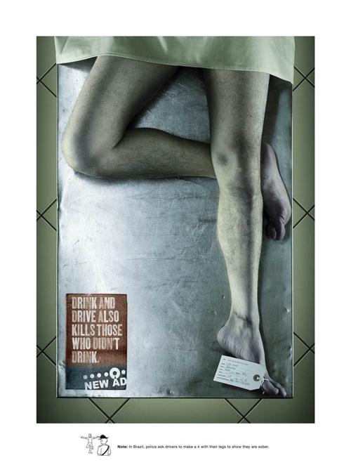 Пьяный водитель способен стать причиной трагедии на дорогеПричем не исключено, что из-за него пострадают невинные люди. Об этом напоминает бразильское агентство Lew Lara. Что ж, еще одно напоминание, что от рук пьяных водителей погибают и те, кто не пьет. Как сообщается в примечании к рекламе, постоять на одной ноге - такой тест на трезвость для водителей порой устраивают бразильские полицейские. ![]() |