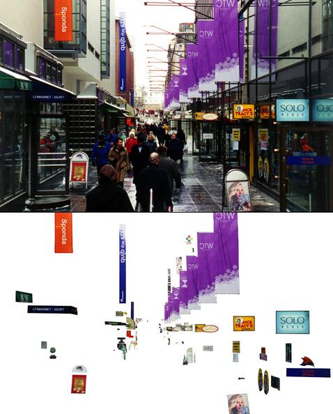"Наша картина города быстро становится городом картин. Постоянно увеличивающаяся доля нашего поля зрения продана за рекламу, — негодует финн. — Город задрапирован эмблемами и объявлениями, двумерная графика рекламы иногда одерживает верх над трёхмерным городским ландшафтом. Мы редко замечаем это в полном масштабе, но это — постоянно присутствует в нашей повседневной жизни".