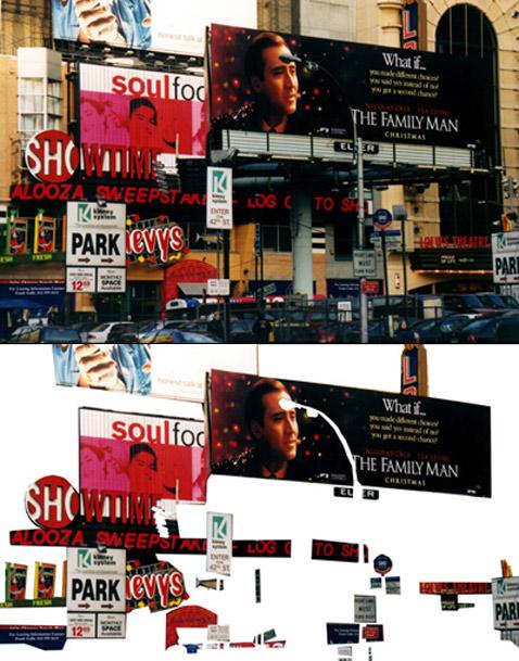 Здание, которое не может быть покрыто рекламными щитами, используется как-то по-другому в том же коммерческом царстве. Это приводит к ситуации, в которой почти каждое здание в городе может быть некоторой формой рекламы", — заключает Пази.