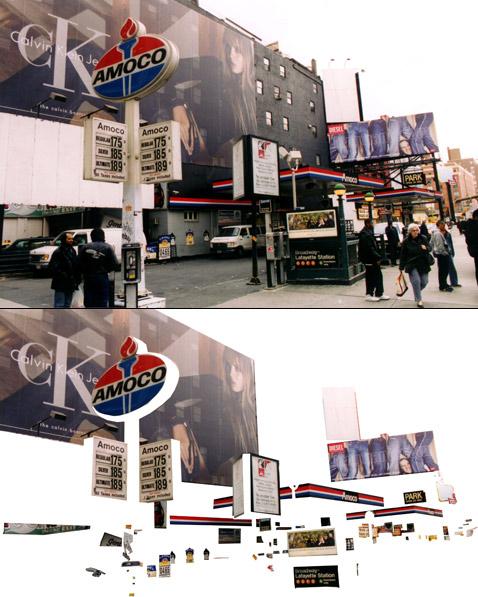 "Если мы посмотрим на городские здания с точки зрения "эстетики экономиста", то увидим два различных способа обращения с ними. Во-первых, они большие, и к ним легко приклеить огромную рекламу — здания могут использоваться как гигантские рекламные щиты без каких-либо модификаций.