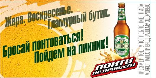 Агентства группы АДВ разработали рекламную кампанию "Клинское - за общение без понтов!" "За общение без понтов!" - это новая масштабная интегрированная кампания пива "Клинское", которая стартовала в начале апреля 2006 г. К разработке концепции новой программы были приглашены сразу несколько агентств группы АДВ: Advantage, Lowe Adventa, Progression, OdnaCo, медийное планирование и размещение осуществлялось агентством Universal McCann. Команда "САН Интербрю" поставила перед агентствами задачу вывести коммуникацию бренда на новый уровень, а для этого - разработать нестандартную и яркую кампанию, которая бы выделялась среди прочей пивной рекламы, а также могла органично работать в любом канале и при осуществлении любой активности бренда. Не случайно, "Клинское" является маркой-флагманом компании "САН Интербрю" в России и одним из лидеров российского пивного рынка на протяжении уже нескольких лет.В результате работы бренд-команды пива "Клинское" и агентств, была разработана и реализована масштабная кампания, которая включила в себя практически все виды маркетинговых коммуникаций: ТВ (4 ролика), размещение на наружных конструкциях (включая размещение на самых нестандартных носителях, таких как мусорные баки и кабинки биотуалетов), проведение нескольких промо-программ в 20 городах России и рекламная поддержка в интернете. Рекламная кампания "Клинского" началась 1 апреля с тизера в наружной рекламе - "Без них лучше...". Вскоре после этого, на нестандартных носителях появилось сообщение: "Короче, "Клинское" - за общение без понтов!", а на ведущих телеканалах стартовали рекламные ролики - "Боулинг" и "Шашлыки". Через несколько дней, в 20 крупнейших городах России стартовали промо-акции. На правах "отважных воинов" пива "Клинское", первыми в город выехали бойцы "Понт патруля", которые проверяли людей на наличие понтов и выдавали им свидетельства об их отсутствии. Жаркий летний сезон поддерживается еще одной промо-акцией: "Найди тачку под ключом! Понты ни при чем!", проходящей в более чем 120 городах России. Под ключами промо банок "Клинское Светлое" можно найти много призов и шанс выиграть один из 10 автомобилей. Акция также поддерживается рекламой на телевидении и на наружных конструкциях большинства российских городов. Концепция: Самое главное в отношениях между друзьями - это простое человеческое общение, когда не надо притворяться кем-то другим, надевать маски, когда можно быть уверенным , что "показухи" не будет. Даже если кто-то в кампании решил выступить "не по теме", друзья всегда поймут и "вернут на землю "запонтившегося" товарища. Для создателей концепции стояла непростая задача - в условиях БЛИЖ ("без людей и животных") продемонстрировать бессмысленность и неуместность понтов, и показать, как здорово проводить время с друзьями. Для визуализации задачи был выбран достаточно агрессивный стиль съемки и монтажа, подкрепленный соответствующим битом и речетативом. Неожиданное сочетание привычных предметов и непривычного музыкального стиля исполнения, усиливает эффект восприятия кампании, поддерживая основное сообщение.