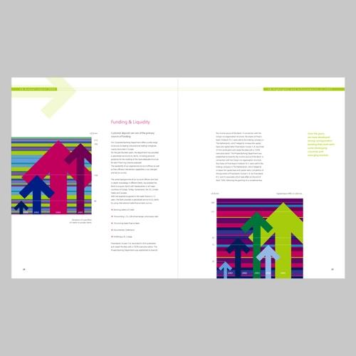 "Финансбанк": годовой отчет. Компания PickUp Brand Solutions разработала годовой отчет для "Финансбанка"За основу концепции был взят известный математический символ "вектор", знак направленного движения. Графическое обозначение вектора, стрелка, в данной концепции является ключевым образом, на котором строится весь визуальный ряд годового отчета. К тому же стрелка является базовым элементом фирменного стиля Финансбанка. Использование этого образа акцентирует внимание на стремительном росте банка в 2005 году, его динамичности, энергичности, успешном развитии. Визуальное решение построено на ярком активном цветовом решении графиков без специальных иллюстраций. Графики выполнены так же в заявленном "векторном" образе. Нестандартное визуальное решение подчеркивает творческий подход Финансбанка в поиске бизнес-решений. Разные толщина и цвет стрелок показывают универсальность банка, наличие пакета услуг для всех типов клиентов. Концепция предполагает интересное полиграфическое решение - печать металлизированными пантонами. ![]() ![]() ![]() ![]() ![]() ![]() ![]() ![]() |