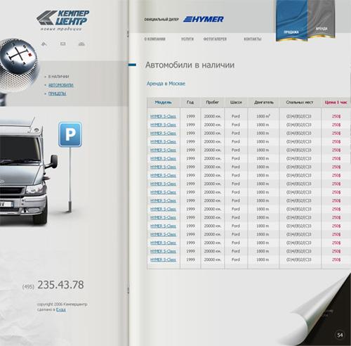 Путешествия по миру вместе с компанией "Кемпер Центр"Дизайн студия XQ закончила разработку Интернет сайта для компании Кемпер Центр, которая является официальным дилером Hymer в России. Hymer - это ведущий европейский производитель жилых прицепов и автодомов на шасси Ford, Fiat и Mercedes-Benz. Сайт был выполнен в холодных "металлических" тонах: от серебристо-серого до белого и светло-голубого. Это сочетание цветов удачно ассоциируется с мощными фирменными автомобилями Hymer, которые изображены на главной странице. Вся концепция сайта была подчинена тому, чтобы при минимуме отвлекающих графических деталей было представлено как можно большее количество информации. И вместе с тем, необходимо было не утратить внешней привлекательности интерфейса. Поэтому сайт удобно структурирован, и Вы сможете найти всю интересующую Вас информацию в короткие сроки. При этом дизайн настолько лаконичен и приятен для восприятия, что он не может остаться незамеченным. ![]() ![]() ![]() |