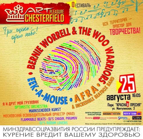 Фестиваль ArtPleasure Chesterfield "Простор для творчества" пройдет 25 августа в парке "Красная Пресня"В клубной жизни обеих столиц существует явление - ArtPleasure Chesterfield. События, проходящие под этим знаком, объединяют в себе разнообразные грани современной городской субкультуры. ArtPleasure Chesterfield - это вид творческого мастерства - умение наслаждаться самыми различными проявлениями творчества, включая любые альтернативные, этнические или авангардные формы и невозможно предсказать, каким окажется формат очередной встречи с ArtPleasure Chesterfield - концерт или кино, фотовыставка или перформанс, инсталляция или клубное шоу. Каждый год под знаком ArtPleasure Chesterfield происходит неординарное по своему масштабу мультиформатное событие - традиционный Фестиваль. На Фестивале, можно ощутить все многообразие творческих удовольствий, объединенных под знаком ArtPleasure Chesterfield. И речь идет не только о различных творческих форматах, в которых работают исполнители на нескольких сценах. Каждый посетитель Фестиваля может проявить собственные творческие способности, создать что-то своими руками. По уже установившейся традиции, Фестиваль проводится под открытым небом. На территории Краснопресненского парка будут работать три сцены. Среди хедлайнеров фестиваля - Bernie Worrell & The Woo Warriors. Американец Берни Уоррелл - легендарная личность, основатель стиля P-Funk, виртуозный клавишник и композитор, чье имя занесено в Зал Славы рок-н-ролла. Выступят также и Afra & Incredible Beatbox Band, знаменитые японские битбоксеры, ставшие триумфаторами "Сонара" - самого авторитетного в мире фестиваля электронной музыки. Двухметровый гигант из Ямайки Eek-a-Mouse представит новейшие искрометные приемы в стиле Dance-Hall. Кроме того, на сцены выйдут звезды российской клубной сцены, а в чилл-ауте будет представлено шоу ди-джеев играющих живую афро- карибскую музыку . Концертная программа - это еще далеко не весь Фестиваль. Всё пространство между сценами представляет собой непрерывную Арт-Зону, где посетители смогут реализовать собственные замыслы и проявить свои творческие способности. И каждое произведение, созданное на площадках Фестиваля, является уникальным авторским экземпляром, образцом ArtPleasure Chesterfield, который становится собственностью автора. В этом и состоит уникальность Фестиваля ArtPleasure Chesterfield. Посетители уносят отсюда не только впечатления о концертной программе, но и вполне конкретные образцы ArtPleasure Chesterfield - произведения, созданные собственными руками. ![]() |