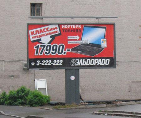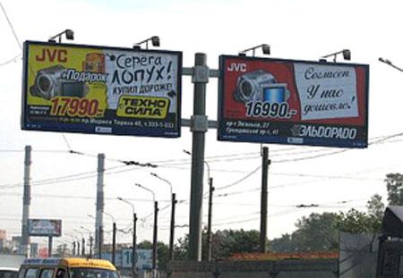 Наружная реклама магазинов «Техносила» тоже отражает приближение нового учебного года – на рекламных щитах присутствует непременное изображение тетрадной странички «в клеточку», используется и школьная лексика: «Серёга/Лёша лопух!» - видимо, этот персонаж купил где-то технику по более высокой цене, чем в «Техносиле».