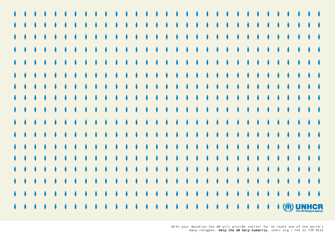 Совместная работа агентств BBDO и Leo Burnett для организации беженцев UNHCRДанный принт - результат совместной работы двух агентств - BBDO и Leo Burnett. Эта реклама призвана привлечь пожертвования для всемирной организации беженцев UNHCR. Надпись гласит: "С Вашим пожертвованием UN сможет дать приют, по крайней мере, одному беженцу из многих в мире. Помогая UN - помогаешь человечеству". Арт директор: Oystein Vik, BBDO, Oslo, Norway Копирайтер: Steve Perciso, Leo Burnett, Toronto, Canada |