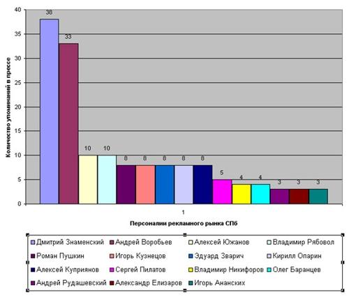 На основе проведенного мониторинга на базе данных «Интегрум» составлен рейтинг наиболее популярных ньюсмейкеров рекламного рынка Петербурга. При мониторинге основной акцент сделан на петербургских СМИ (более чем 300 источников информации):