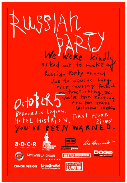 Русская вечеринка на Golden Drum: гармошка, самогон, блиныВ рамках открывающегося 1 октября в Словении 13-го международного фестиваля рекламы Golden Drum пройдет традиционная русская вечеринка. Как рассказал Влад Васюхин, официальный представитель GD в России, на этот раз подготовкой национального пати активно занимались дирекции Московского международного фестиваля рекламы, презентация которого впервые пройдет в Портороже, и Клуба арт-директоров России. Партнерами организаторов выступили "Родная Речь", Leo Burnett, АРК, Sostav.ru, Fibr Film Production, Dago, "Самогон Косогоров", Zunge Design, "Линия График" TNC Creative service и ShowReel.ru. "По-моему, это замечательно, что рекламная индустрия объединила усилия и средства, чтобы Россия была представлена в Портороже заметно и ярко, за что отдельное спасибо Кириллу Смирнову, Юлии Хрущевой, Елене Артамоновой, Елене Нарышкиной и, конечно, всем спонсорам. Радует, что московский фестиваль выходит на международную орбиту и заявляет о себе на одном из главных европейских смотров. Презентация, намеченная на 4 октября, привлечет внимание наших зарубежных коллег, а на вечеринке, которая пройдет 5-го, будут разыграны бесплатные аккредитации на ММФР". "Мы уверены, что вечеринка пройдет весело, - заметила директор ММФР Елена Нарышкина. - Понятно, что она рассчитана в основном на иностранцев (хотя и русская делегация в этом году - более ста человек из Москвы, Санкт-Петербурга, Новосибирска и других городов). Отсюда и решение использовать узнаваемые и ожидаемые символы: блины как универсальный национальный фаст-фуд, живая народная музыка - из Москвы приглашен замечательный аккордеонист Андрей Шелиганов, а продолжит программу сет модного московского ди-джея Михаила Ковалева". Афиши и приглашения на вечеринку сделал молодой столичный дизайнер Протей Темен (Zunge Design). ![]() ![]() ![]() |