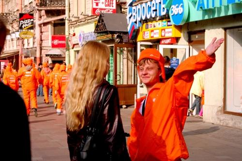 Оранжевые человечки - промо акция сети "Чайная ложка"В сентябре-октябре 2006г. сеть чайных "Чайная ложка" совместно с агентством маркетинговых коммуникаций "Феррата" реализует промо акцию в рамках рекламной кампании "Думаешь о еде? Пора обедать в "Чайной ложке!" На улицах Санкт-Петербурга появилась толпа молодых людей в оранжевой одежде, оранжевых шарфах и шапках. Молодые люди и девушки скачут вприпрыжку по Невскому проспекту, танцуют на Малой Садовой, играют в ручеек у Гостиного двора, а на Дворцовой площади они водят хороводы вокруг невест. На спине у каждого оранжевого человечка написана фраза "Пора обедать", а за плечами - огромная чайная ложка. Несмотря на то, что эта акция - новый формат продвижения для сети "Чайная ложка", уже первые дни показали, что она более чем успешна. Оранжевые человечки заметны, они вызывают живой интерес у прохожих, их обсуждают на форумах. У петербуржцев и туристов уже возникла примета: если встретишь оранжевых человечков, то целый год будет сытым и счастливым. Кампания по продвижению, которую развернула "Чайная ложка", включает также рекламу на радио, в метро, рекламу в чайных на скатертях и на радио "Чайная ложка". Ее основными целями являются повышение лояльности потребителей, увеличение частоты посещений сети, стимулирование продаж обедов. ![]() ![]() ![]() ![]() ![]() |