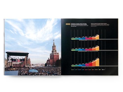Дизайн-бюро "Агей Томеш": годовой отчет для компании "Вымпелком"Главной темой отчета было выбрано 10-летие присутствия "Вымпелкома" на Нью-йоркской фондовой бирже. Визуальным контекстом, позволяющим "масштабировать" успехи Компании за эти десять лет, стали события общероссийского масштаба - не всегда самые главные, но ярко передающие позитивные изменения в экономике и обществе страны. ![]() ![]() ![]() ![]() ![]() ![]() ![]() |