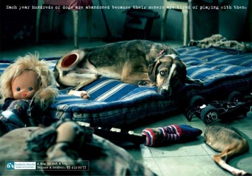 Очередная реклама, направленная на защиту животныхДанная рекламная кампания направлена на защиту домашних животных. Надпись на принтах гласит: "Каждый год сотни собак бывают брошены, потому что их хозяевам надоедает играть с ними". Эти плакаты оригинальны и притягивают взгляд. Их основная идея состоит в том, что собаки не являются игрушками. ![]() ![]() |