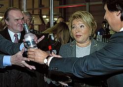 Валентине Матвиенко поднесли конвейер водки. Рустам Тарико открыл завод в Санкт-Петербурге![]() Валентина Матвиенко по-новому взглянула на алкогольную перспективу, открытую ей Рустамом Тарико (справа) при участии главы Роспатента Бориса Симонова (слева) Фото: Никита Инфантьев / Коммерсантъ Запуск водочного завода "Русский стандарт" в Петербурге был отмечен open-air у Эрмитажа и самым масштабным салютом за всю историю города на Неве. Председатель совета директоров группы компаний "Русский стандарт" Рустам Тарико изо всех сил оправдывал звание лучшего устроителя вечеринок среди миллиардеров. Еще в августе господин Тарико был не более чем номером 410 в международном списке Forbes, банкиром и водочным магнатом. А уже в сентябре The Financial Times объявила его лучшим устроителем вечеринок среди миллиардеров. И вот на прошлой неделе господин Тарико имел возможность оправдать это звание – он открывал в Санкт-Петербурге новый завод. Автобусы с гостями и хозяином мероприятия подъехали к Мраморному дворцу (филиал Русского музея) с опозданием на час. Вокруг памятника Александру III бегал, пытаясь согреться, ресторатор Олег Тиньков. Температура была +9, а господин Тиньков прибыл вовремя. Господин Тарико вышел в черном бархатном пиджаке с фиолетовым платком на шее. С водочным магнатом была спутница по имени Алена, которая очень мило смущалась. Пройдя во дворец, гости смогли насладиться не только коктейлями с водкой, но и выступлением ансамбля "Терем-квартет". "Терем" демонстрировал, что может сделать русская душа из европейской классики посредством малой домры, домры-альта, баяна и балалайки-контрабаса. Музыка прерывалась только затем, чтобы господин Тарико мог поблагодарить гостей на русском, английском и итальянском, а ведущие церемонию Елена Ханга и Валдис Пельш могли дать слово гостям. "Русская женщина обязана пить водку!" – увещевал обладатель 60% акций компании "Арбат Престиж" Владимир Некрасов петербургского винного критика Тамару Иванову-Исаеву. Та махала рукой, прося белое бордо к блюду из тунца. По ходу приема гости становились все сентиментальнее. Игорь Гальбурт, представляющий интересы "Русского стандарта" в США, делился: "Я счастлив, что Тарико – мой старинный друг. Мы знакомы 16 лет. Он тогда был бедным студентом и подрабатывал везде, где только можно!" После окончания мероприятия во дворце еще державшаяся на ногах публика отправилась на набережную Невы в манеж Кадетского корпуса. "Здесь что, новый клуб?" – любопытствовал главный редактор журнала FHM Дмитрий Губин. "Сегодня здесь филиал 'Дягилева'",– откликались из VIP-ложи. "Тюнингованных блондинок маловато",– заметил господин Губин, покосившись на своего коллегу, главреда "Time Out Петербург" Андрея Савельева, закованного в ошейник. Его вела на цепи через танцующую толпу роскошная брюнетка. На следующий день на Пулковском шоссе состоялось собственно открытие завода (самого передового, по заверениям владельца). Москвичи нехотя признавали, что столичная жесткая кальцинированная вода действительно не творит со спиртом того чуда, как мягкая питерская. Но больше обсуждали тот факт, что нажимать кнопку конвейера должна лично петербургский губернатор Валентина Матвиенко. В этой связи вспоминали императора Николая II, который когда-то нажатием кнопки привел в движение пролеты спроектированного инже