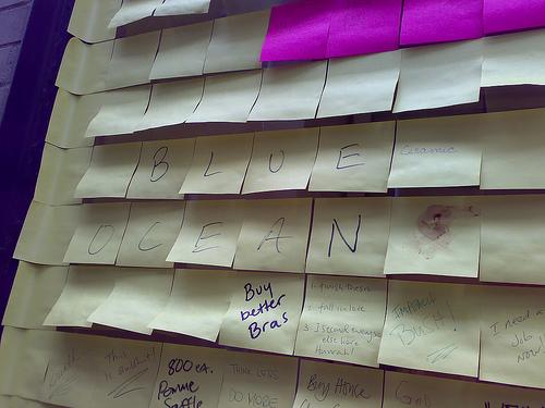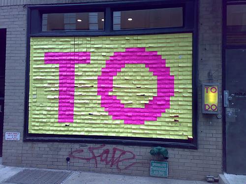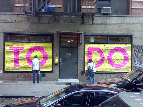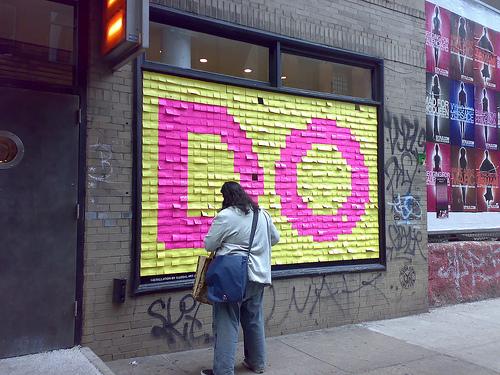 Общественный список дел в СохоНедавно в Сохо, Нью-Йорк, появилась стена из записок post-it. Людям, проходящим мимо, предлагалось писать на них все, что им угодно. Таким образом, возникла сгенерированная потребителями, в прямом смысле этого слова, стена. Это очень хороший способ узнать, о чем думает обычный человек в данный момент. Надпись: "Сделать" ![]() ![]() ![]() ![]() ![]() |