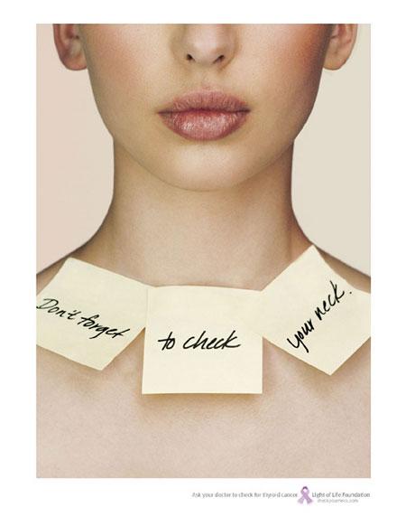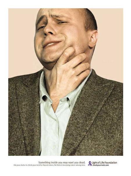Агентство Lowe выпустило кампанию для фонда "Свет жизни"Фонд "Свет жизни" создан одним из пациентов, перенесшим это грозное заболевание - рак щитовидной железы. Этот тип рака опасен тем, что даже спустя пять-десять лет после удачно проведенного хирургического вмешательства раковые клетки могут начать развиваться вновь. Поэтому пациентам рекомендуется проводить регулярные проверки щитовидной железы. Она располагается внизу шеи, и один из симптомов заболеваний щитовидки - появление на шее узелков или "шишек". Слоган кампании, выпущенной нью-йоркским подразделением Lowe - "Проверьте вашу шею". ![]() ![]() ![]() ![]() ![]() |