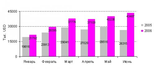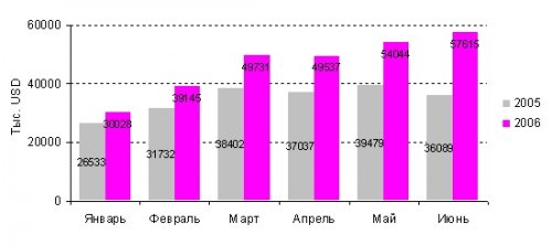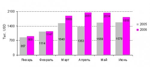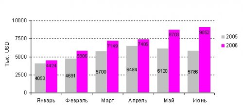 За период с января по июнь 2006 года наблюдается значительный рост рекламных затрат на телевидении. В июне по сравнению с январем рекламный бюджет увеличился на 99,6%.