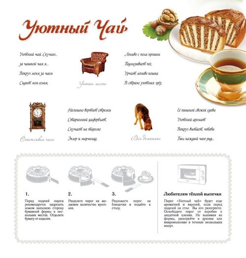 Компания "Внешний Вид" разработала торговую марку для линии сдобной выпечки "Уютный чай"Заказчиком этого проекта стала новая компания, для которой предварительно было разработано название - "Кондитерское Собрание" и графический знак. Беглый взгляд на рынок показал, что в сегменте "сдоба" конкуренция невысока, а предложение со стороны западных марок отсутствует вовсе. Проанализировав дизайн упаковки конкурентов, специалисты компании "Внешний Вид" пришли к выводу, что все существовавшие решения были "тяжёлыми" и 80% всей рекламной поверхности занимало изображение изделия. В этой связи было решено создать более лёгкий и концептуальный дизайн, рассчитанный на аудиторию, имеющую минимальные эстетические притязания. В основу концепции торговой марки решено было положить "чаепитие", как самую традиционную для России ситуацию потребления выпечки. Более глубоко концепция марки раскрыта в помещённом на оборотную сторону упаковки стихотворении: Уютный чай. Скучаю за чашкой чая я… Вокруг меня за чаем Сидит моя семья… Неспешно вертит стрелки Старинный циферблат, Скучает на тарелке Эклер и мармелад, Лениво с пола крошки Подлизывает пёс, Урчит, скучая, кошка В стране уютных грёз, И пышной свежей сдобы Уютный аромат Вокруг витает, чтобы Был каждый чаю рад… Название "Уютный Чай", как и ключевые графические элементы, было разработано с той целью, чтобы сделать максимально чёткой коммуникацию на "домашность", уют и теплоту. Название "Уютный Чай" напрямую не сообщает характеристики продукта, перекладывая решение этой задачи на графические и текстовые элементы. Оно решает более важную задачу создания эмоционального настроя у покупателя и даёт производителю важную "техническую возможность" расширять торговую марку в сторону других видов продукции (конфеты, шоколад, печенье, пряники, чай и т.д.) и типа сырья (сдоба, безе и т.д.) Лицевая сторона упаковки состоит из 4-х основных зон. Зона торговой марки - состоит из следующих элементов-констант: логотип; окошко, являющееся основным элементом эмоциональной коммуникации; знак производителя, служащий "гарантией" качества продукции; чашечка - не несущий особой смысловой нагрузки символ, уравновешивающий общую композицию. Зона продукта - призвана вызвать "слюноотделение", т.е. стимулировать совершение покупки, а так же демонстрировать форму и характер изделия. Зона ингредиентов - наглядно демонстрирует "вкус", чётко показывая на чистом белом фоне ключевые ингредиенты, которыми одна ассортиментная позиция отличается от другой. Зона дифференциации - цветной фон сзади изделия, создающий большое цветное пятно, которое служит для того, чтобы потребитель и продавец даже при беглом взгляде чётко отличал одну позицию от другой. Оборотная сторона решена так, что большинство технической информации выведено за её пределы и, таким образом, она стала второй рекламной поверхностью, способной выполнять рекламную функцию наравне с лицевой стороной упаковки. Оборотная сторона развивает эмоциональную составляющую торговой марки путём использования графических (кодовые объекты, ассоциирующиеся с домом и уютом) и текстовых элементов (стихотворение). На оборотной стороне так же продублированы ключевые элементы рациональной коммуникации (изделие в разрезе, ингредиенты), чтобы, знакомясь с рекламной историей, поку
