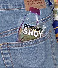 Идея использовать пакеты для алкогольной продукции пришла Джеральду Бахмону. До этого напитки уже разливали по небольшим пластиковым пакетикам-саше, рассчитанных на 25 мл. Американская компания PocketShot выпускает алкоголь в эластичной упаковке, с виду напоминающей традиционные дой-паки, используемые для разлива неалкогольной продукции. Пакеты получили название Pocket Shot. Преимуществ у новой емкости предостаточно: это и пригодность к переработке, устойчивость при хранении и удобство в использовании.