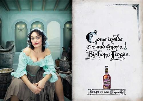 Реклама крепкого кентского эля Bishops FingerПеред Вами реклама крепкого кентского эля Bishops Finger Strong Ale одной из старейших пивоварен Британии, разработанная агентством JWT. Принты навевают атмосферу средневековья. Рекламная кампания шла в достаточно долгое время в журнале Time Out. Однако Британское бюро по стандартам рекламы все же спохватилось и отреагировало на поступившую жалобу, запретив один из постеров. Его бюро сочло провокационным, а также связывающим такие понятия как употребление алкоголя и сексуальная привлекательность, что запрещено британским законодательством. Слоганы: "Заходи внутрь и наслаждайся … Bishops Finger" "Садись и наслаждайся … Bishops Finger" "Я получаю непередаваемое наслаждение от … Bishops Finger" "Всегда есть время втиснуться в Bishops Finger" "Ничего не удовлетворяет меня так, как Bishops Finger" "Я люблю мой … сильный темный и красивый" "Ничего не щекочет мое воображение так, как Bishops Finger" ![]() ![]() ![]() ![]() ![]() ![]() ![]() ![]() ![]() Запрещенный принт ![]() |