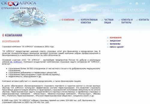 Студия веб-дизайна "Media5" завершила работу над созданием корпоративного сайта для страховой компании "СК Алроса"Дизайн нового интернет-представительства компании разрабатывался с учетом основного девиза "СК Алроса" - "Чистые отношения, твердые гарантии". Он лаконичен и не давлеет над содержанием. Креативное решение было найдено в стиле минимализма. Выполненный в фирменном стиле компании, сайт отвечает главному требованию заказчика: простота и доступность. Удобная система навигации и внятная структура сайта позволяют посетителям легко найти нужную информацию. Ресурс создан на основе эксклюзивной разработки "Media5" - системе управления сайтом CM5, с помощью которой можно легко и без специальных знаний управлять как содержанием сайта, так и его структурой. ![]() ![]() |
