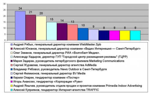 Рейтинг самых популярных ньюсмейкеров. ОктябрьСоставлен октябрьский рейтинг самых популярных ньюсмейкеров рекламного рынка Петербурга. Рейтинг, как и предыдущие, составлен по критерию простого упоминания конкретного деятеля рекламного рынка Петербурга в СМИ. В октябре пресса чаще всего писала о следующих персонажах рекламного рынка Петербурга: ![]() Октябрьский рейтинг самых популярных ньюсмейкеров петербургского рекламного рынка отличается от предыдущих тем, что трое его участников выступали не только на страницах местной прессы, но и на полосах уважаемых федеральных изданий: «Ведомостей» (Алексей Южанов и Игорь Ананских) и «КоммерсантЪ Daily» (Сергей Филимонов). Мониторинг упоминаемости проведен на основе базы данных «Интегрум», включающей 4,7 тыс. русскоязычных СМИ. Основной фокус при поиске персоналий сделан на петербургских СМИ (около 350 источников информации): • деловых (включая КоммерсантЪ (СПб), «Эксперт – Северо-Запад», «Деловой Петербург», и пр.), • общественно-политических (включая «Петербургский Час Пик», «Невское время», «Смену», «Вечерний Петербург», «АиФ - Петербург», и пр.), и • профессиональных региональных изданий о рекламе (AdLife.ru, RedLineMedia.ru, и пр.). При мониторинге учитывались все СМИ базы данных «Интегрум» (4, 7 тыс.), как уже озвученные региональные, так и федеральные: общественно-политические, деловые и профессиональные СМИ («Ведомости», «КоммерсантЪ Daily», Sostav.ru, Adme.ru, «Индустрия рекламы», «Региональная реклама», «Наружная реклама», Advertology.ru и пр.). adlife.spb.ru |
