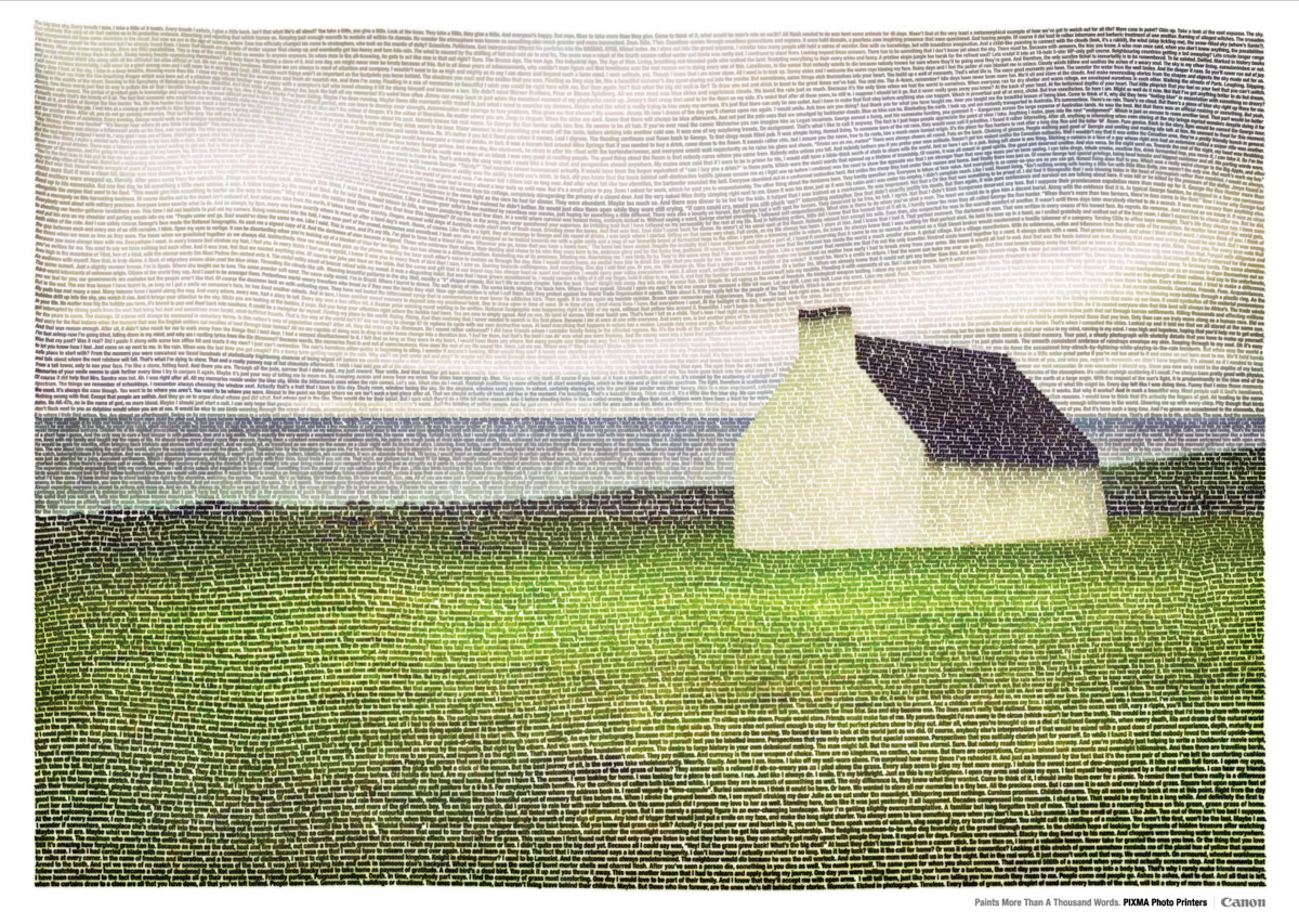 Реклама фото принтеров Canon PIXMA от агентства DentsuМножество агентств использовало слова, объекты, людей или животных, составляя из них что-то новое. Перед вами опыт агентства Dentsu в этой сфере. Они разработали рекламу для фотопринтеров Canon PIXMA: "Краски более тысячи слов". Агентство: Dentsu Malaysia Творческий директор: SP Lee Арт директор: Norman Tang, KC Aui Копирайтер: Chan Woei Hern |