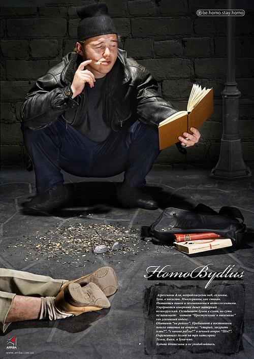 Будьте бдительны!Рекламное агентство Arriba Media Group, негодующие морально-интеллектуальным разложением нашего общества, решилось на особую акцию — созданием галереи портретов современников, с прилагающимся описанием особых примет изображенных субъектов. Общество наше порочно, алчно и мало контролируемо! Только не эти тезисы как начало очередной душеспасительной проповеди. Есть один нюанс: нельзя путать понятия. Одно дело — общество, а совсем другое — люди. Те самые homo sapiens, сиречь мыслящие разумные и благообразные живые субстанции коих можно ежедневно лицезреть по всему миру. Удручает вот какое обстоятельство: современный мир до безобразия безумен, поэтому с нашим дорогим homo происходят генетические мутации. Когда такое приключается помимо воли человека — это, конечно, печально, но проблема слишком серьезна и с наскока ее не решить. Но! Когда такие изменения имеют место быть по воле человека — это ужасает. На описание новых видов, порожденных нашим обществом и на предостережение от следования по их стопам и направлен проект Be.Homo.Stay.Homo