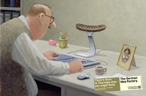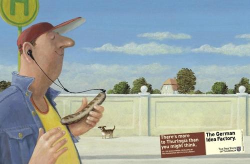 Немецкая фабрика идей«Немецкая фабрика идей» — под таким слоганом проходила рекламная кампания в Тюрингии, исторической области восточной Германии, направленная на продвижение этого региона. Серия постеров, рекламных роликов и специальных акций сопровождала кампанию с 2001 года и теперь, ко времени своего завершения, она отмечена не одним десятком призов самых разных конкурсов и премий (все трофеи за 6 лет можно посмотреть здесь). ![]() До сих пор Тюрингия, сейчас разделенная на несколько округов, была известна по путеводителям как место божественных ландшафтов, богатой культуры, древней истории и вкуснейших сосисок. Все, конечно, так и есть, но Тюрингия может предложить намного больше. В центре Германии теперь появилась «фабрика идей» размером с федеральную землю. ![]() Издавна здесь генерировались и развивались великие мысли, которые оставили свой след в нашей истории. Умом жителей этой области был создан термометр, микроскоп и огнеупорное стекло. Наряду с красотами, Тюрингия теперь становится перспективным экономическим центром Германии, отчего привлекательности территории только добавляется. Серия принтов «Тюрингия не просто сосиски» была создана берлинскими рекламщиками DDB. ![]() www.german-ideafactory.com KAK.RU |