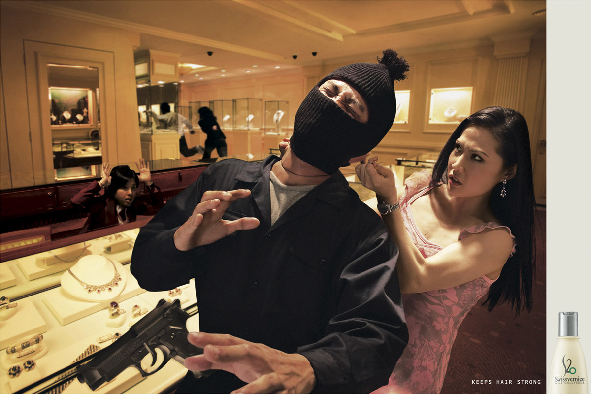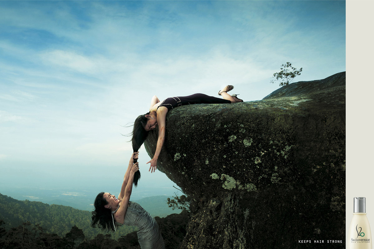 Сильные волосы от S2O Swissvernice и агентства TBWA-ISCРеклама средства для укрепления волос S2O Swissvernice, созданная агентством TBWA-ISC, делает упор на вещи, которые можно было бы сделать, если бы волосы были очень сильные и крепкие, например, забаррикадировать дверь, задушить грабителя или спасти подругу от смерти в пропасти. Надпись: "Поддерживает волосы сильными. S2O Swissvernice. Решения для волос". Агентство: TBWA-ISC, Malaysia Творческий директор: Bas Moreu, Ong Shi Ping Арт директор: Ong Shi Ping, Tan Giap How Копирайтер: Ong Shi Ping, Tan Giap How Фотограф: Edmund Leong (Untold Images) |