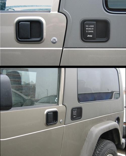 Наклейки на автомобили от Jeep и BBDOЗабавную промо-акцию придумало агентство BBDO для джипа марки Wrangler Jeep. Эта акция является преддверием к выпуску четырехдверной модификации джипа Wrangler. Пока владельцев не было рядом, на автомобилях были размещены наклейки, напоминающие ручку еще одной двери. Надпись: "Скоро 4-хдверный Wrangler. Jeep" Агентство: BBDO, Detroit, USA Копирайтер: Ty Hutchinson Арт директор: John O'Hea ![]() |