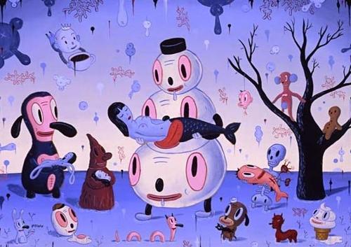 Хозяин тоскиОн – представитель поколения иллюстраторов, делающих яркие мультяшные работы, полные страха, боли и, подчас, смерти. Однако в отличии от своих коллег Бейсман никогда не оглядывается вокруг в поисках образа или проблемы. Даже рисуя обложки для Нью-Йоркера, этикетки для коробок конфет, или клипы Бьорк, он всё берёт из своей головы, все существа рождаются там. И говорит он всегда об одном и том же: о тоске, боли и смерти. ![]() При этом сила его картинок настолько притягательна, что заставляет склонить головы даже маркетологов: кто в здравом уме будет покупать банки с газировкой, если на них изображены разрубленные головы и непонятные монстры? А мятные леденцы с пылающими зверьками на коробках? Нет, покупать будут, потому что дело даже не в немотивированной жестокости, царящей на рисунках Бейсмана, а в том, что они пробуждают в человеке глубоко засевшую тоску по инобытию. И дарят иллюзия обретения лекарства от неё. ![]() ![]() ![]() ![]() ![]() ![]() ![]() www.garybaseman.com KAK.RU |