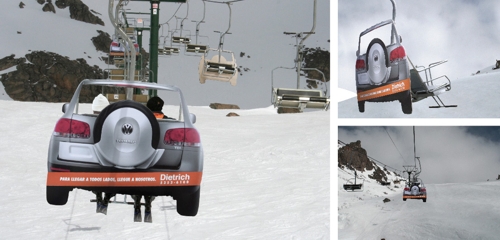 Агентство Grey для дилера Dietrich: Volkswagen Touareg вместо подъемникаАгентство Grey создало для официального автомобильного дилера Dietrich рекламную акцию, которая призвана прорекламировать эксклюзивный джип Volkswagen Touareg, стремящийся занять верхушку рынка со своей концепцией "Достигните всего, войдите с нами в контакт". Большие фото задней части этого автомобиля были размещены на подъемниках лыжного курорта, создавая ощущение, будто вы поднимаетесь в эту гору на машине. Агентство: Grey, Argentina Творческий директор: Pablo Gil, Sebasti?n Gar?n Копирайтер: Mart?n Dufou Арт директор: Cristian Feichtenslager |