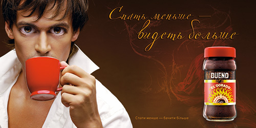Агентство креативных коммуникаций Мотто организовало рекламную кампанию для кофе BuenoИдея "меньше сна - больше впечатлений" ярко характеризует роль кофе в жизненном цикле обычных людей. Кофе с "говорящим" названием Bueno доставляется в Украину из Испании. Теперь и мы можем смотреть на жизнь широко раскрытыми глазами. Созданная агентством "Мотто" "большеглазая" кампания для Bueno включала в себя креативную концепцию и дизайн бордов, плакатов в метро, оформления торговых точек и транспорта. Состав творческой группы Клиент: "БАКО" (Bueno) Директор - Александр Анатольевич Байло Креатив: "Агентство креативных коммуникаций Мотто" Креативный директор - Марк Кестельбойм Концепция и копирайт - Андрей Латанский, Максим Ветчинкин Менеджер проекта - Наталья Учанина Эккаунт - Станислав Ратушный Дизайн - Илья Пашков, Константин Головченко, Сергей Стеблина, Денис Дуков, Василий Смирнов Фотограф - Игорь Сахаров ![]() ![]() ![]() ![]() ![]() ![]() ![]() ![]() ![]() |