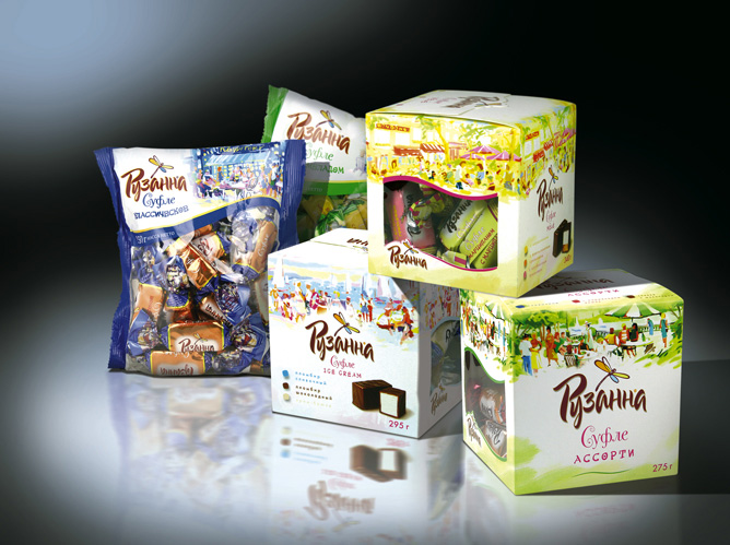 Depot WPF Brand & Identity для ТМ «Рузанна»В течение 2006 года компания «РКФ» («Рузская кондитерская фабрика») в рамках продвижения в категории шоколадных конфет суфле провела репозиционирование ТМ «Рузанна». До репозиционирования под зонтичной ТМ «Рузанна» выпускался широкий ассортимент кондитерских изделий среднего ценового сегмента. Портфель марки включал в себя продукты из различных категорий и объединял более 10-ти суббрендов: суфле в шоколаде, шоколадные конфеты с различными видами начинок, фрукты в шоколаде, молочные конфеты. Наибольшей популярностью из всех продуктов, выпускавшихся под ТМ Рузанна, у потребителей пользовалось – суфле в шоколаде. На момент запуска проекта марка не имела четкого позиционирования и не обладала четко идентифицируемыми свойствами. Основываясь на анализе рыночной ситуации и собственных возможностей, компанией РКФ было принято решение развивать под ТМ «Рузанна» только категорию продуктов на основе суфле. Ассортиментый портфель обновленной марки объединяет хорошо знакомые потребителю группы вкусов: «суфле классическое», «суфле с мармеладом», «двухслойное суфле», и уникальные новинки – группа вкусов «Суфле «Пломбир», суфле с марципаном и фруктовым грильяжем. Конфеты продвигаются в трех форматах фасовки: - Традиционный для российского рынка - вес; - Экономичный тип фасовки – полупакеты «подушка»; - Коробки ассорти: «Суфле Ассорти», «Суфле Ice Cream», «Суфле Mele». При подготовке проекта был проведен ряд маркетинговых исследований, в ходе которых были изучены особенности потребления в категории сбивных конфет, ожидания от новой марки, протестированы несколько вариантов концептуального дизайна на соответствие разработанному позиционированию. В рамках проекта компания Depot WPF Brand & Identity принимала участие в разработке позиционирования и выполнила весь комплекс работ по разработке логотипа, созданию всех видов упаковки (фантик, мягкая упаковка, коробка) для всего ассортимента продукции ТМ «Рузанна». |