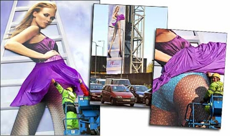 Трусики Pretty Polly на огромном плакате в Лондоне23 ноября одному рабочему посчастливилось устанавливать самый большой рекламный плакат в Лондоне, высотой в семь этажей. Он рекламирует женское нижнее белье и колготки "Pretty Polly". На принте изображена длинноногая модель, одетая в настоящую юбку из легкого материала. Когда дует ветер, юбка поднимается, демонстрируя всем окружающим трусики и колготки от "Pretty Polly". ![]() |
