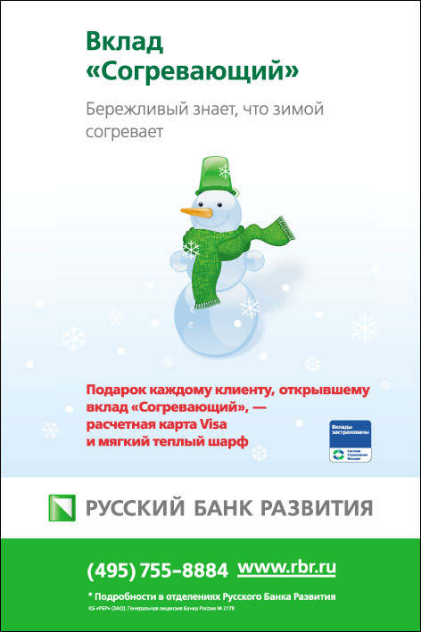 Русский Банк Развития согревает своих вкладчиков. Рекламная кампания сезонных вкладов от рекламного агентства"New Channel"
