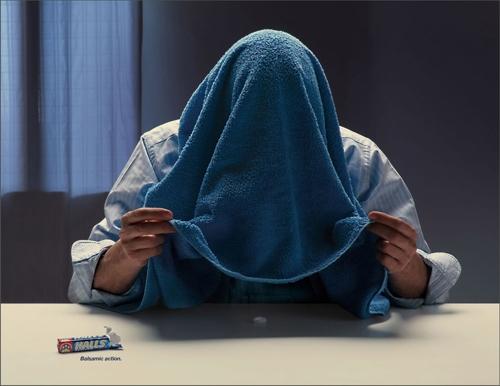 Ингаляции от Halls и агентства JWT ItalyВсе мы помним, как приходилось делать ингаляции, когда еще не было специальных ингаляторов. Да и сейчас многие предпочитают накрыть голову полотенцем и вдыхать лечебные пары эвкалипта, разнообразных настоев и других веществ. Агентство JWT Italy считает, что с таким же успехом можно вдыхать пары Halls, который обладает эффектом бальзама. Надпись: "Halls. Действие бальзама" Агентство: JWT, Italy ![]() |